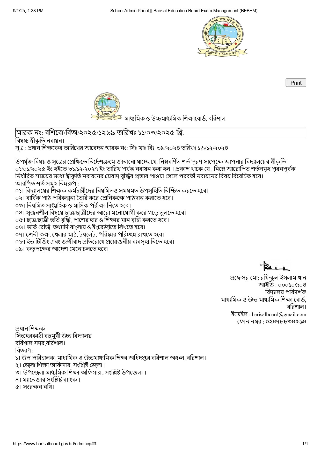 স্বীকৃতি - সিংহেরকাঠী বহুমুখী উচ্চ বিদ্যালয়